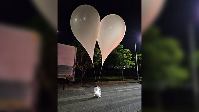 흰색 대형 풍선 2개에 비닐봉투를 매달아 놓은 형태로, 봉투 안에는 종이조각과 쓰레기, 거름으로 추정되는 오물 등이 들어있었다고 합니다.