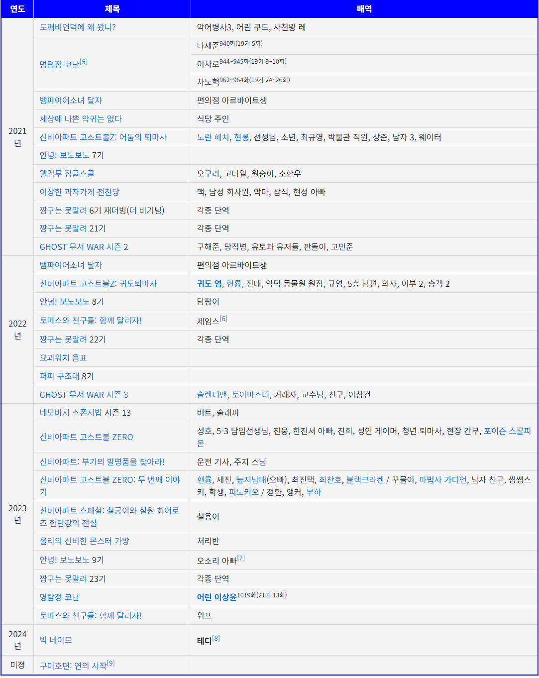 이우리는 성우는 2021년에 데뷔, 작년까지도 활발한 활동을 이어오고 있었습니다. 아래는 그동안 연기한 작품 목록입니다.