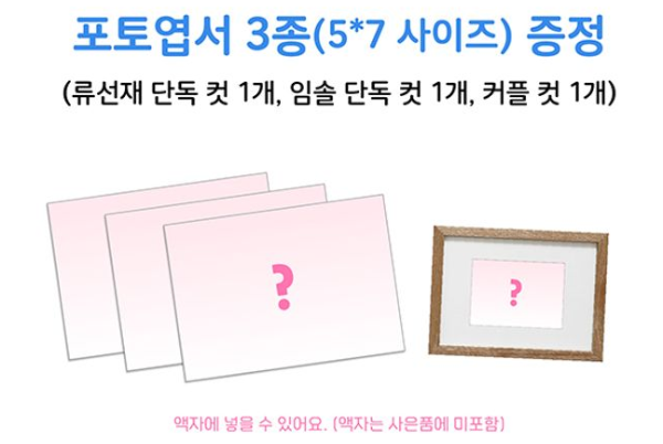 선재 단독 컷 1개, 솔 단독 컷 1개, 커플 컷 1개로 구성된 포토카드, 포토엽서, 리무버블 스티커로 구성되어 있으니 놓치지 말고 꼭 받아보세요!
